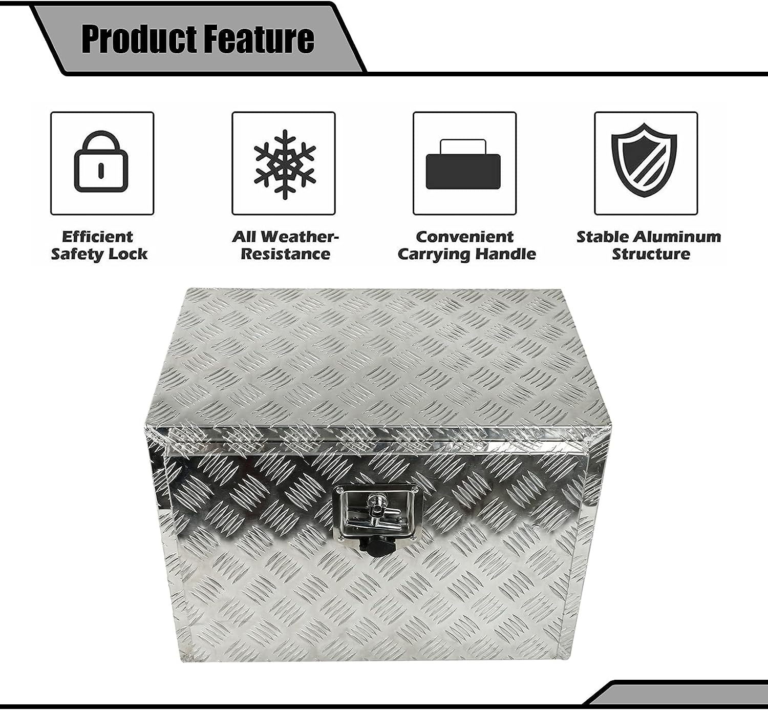 Construção de alumínio premium: Feita em alumínio robusto e resistente à corrosão, esta Caixa de Ferramentas é um exemplo de durabilidade. Seu design resistente às intempéries incorpora uma tampa sobreposta que atua como uma barreira contra umidade e infiltração de água. Como resultado, suas ferramentas e suprimentos valiosos permanecem protegidos contra possíveis danos causados por condições climáticas adversas.