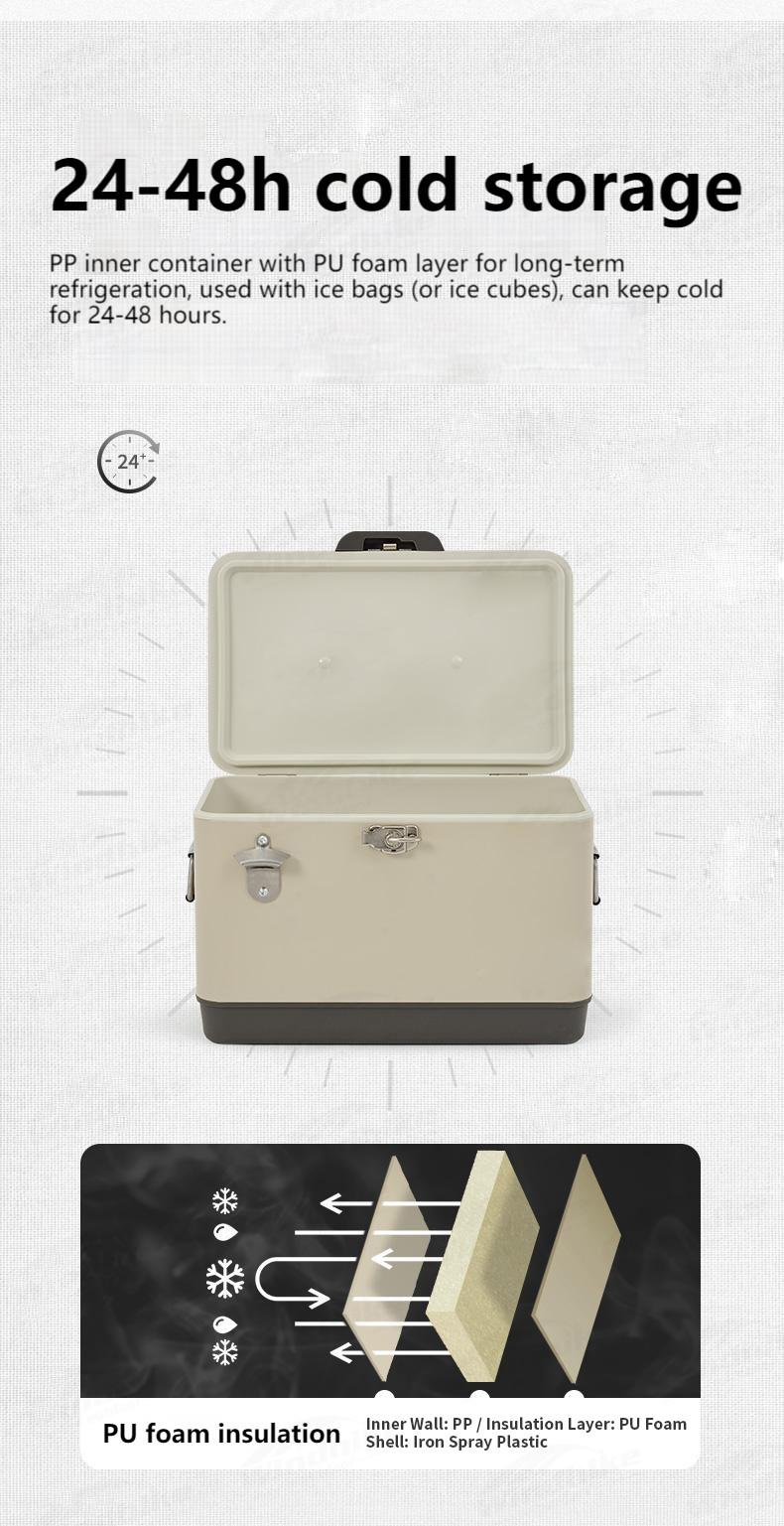 Caixa térmica de acampamento de metal 29L/51L - Baú de gelo com impressão personalizada