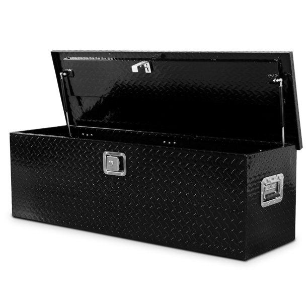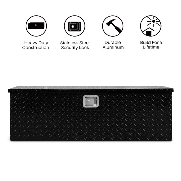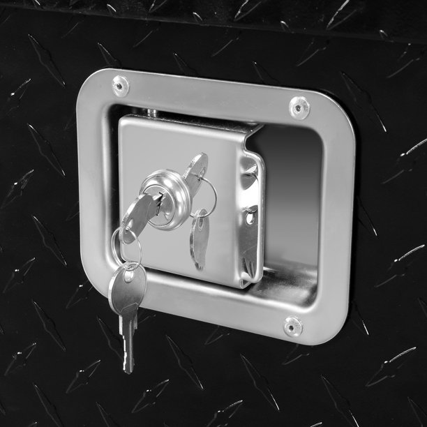 Nossa caixa de ferramentas foi projetada para economizar espaço e fornecer armazenamento extra na caçamba do caminhão. Esta caixa de ferramentas é construída em alumínio texturizado para máxima durabilidade. A porta possui um lábio suspenso que resiste à entrada de água. A porta dobrável fornece acesso total. O cadeado embutido garante que todos os itens sejam mantidos seguros e protegidos. Uma caixa de ferramentas perfeita para ATV, casa, local de trabalho, carro, caçamba de caminhão, reboque, caixa de ferramentas etc.