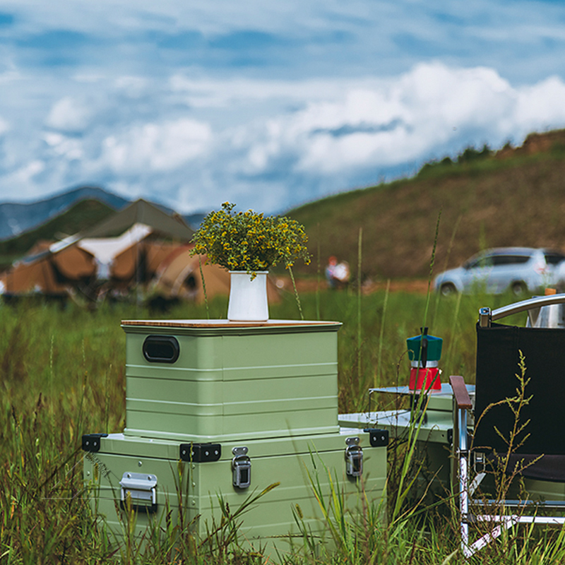 Cesta de acampamento de alumínio e contêiner para porta-malas de carro