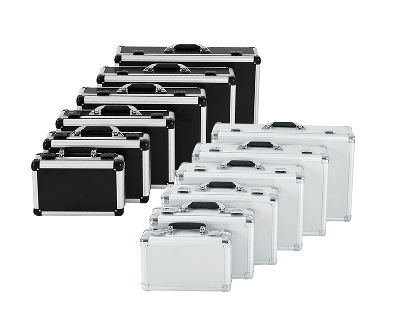 •O estojo com a marca na tampa é feito de alumínio durável com enchimento de espuma na parte interna.