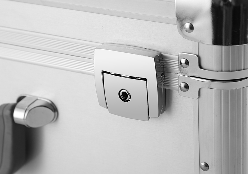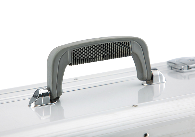 • 1 alça frontal de plástico (pintada com plástico) para fácil portabilidade e 2 travas para trancar a caixa para maior segurança.