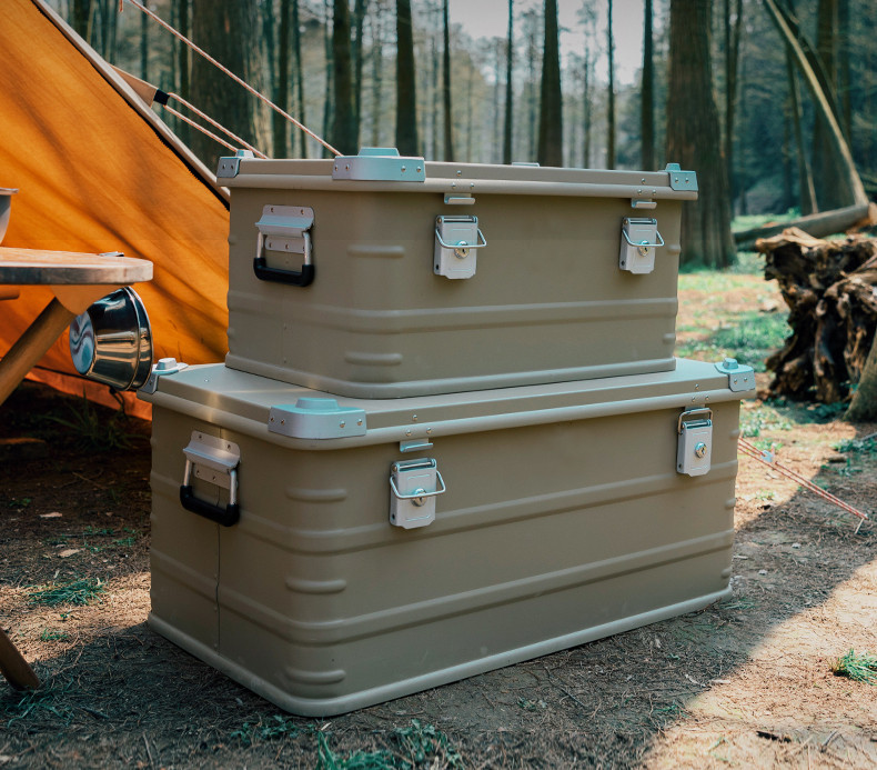 Projetado para eficiência: A série de caixas de acampamento de alumínio foi projetada para otimizar o transporte, economizando espaço. Fabricada com materiais duráveis e de alta qualidade, este produto garante o transporte ideal. Recursos práticos notáveis aumentam ainda mais as vantagens dessas caixas de transporte.