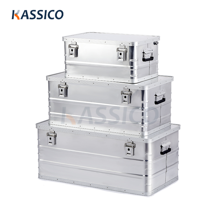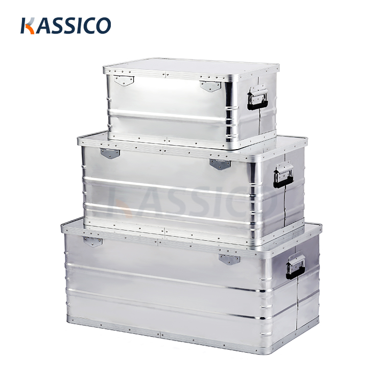 Caixas de alumínio empilháveis para uso móvel, armazenamento doméstico